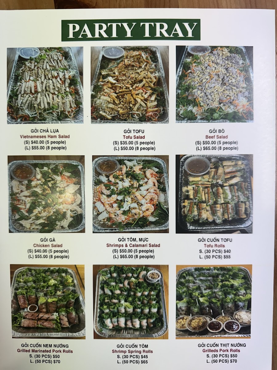 Saigon House's Party Tray options, which include Gỏi Chả Lụa, Gỏi Tofu, and Gỏi Bò, are perfect for sharing, while the Bánh Mì (Sandwich Tray) offers a convenient and delicious option for on-the-go meals. Whether you're in the mood for noodle soups, vermicelli, rice dishes, or flavorful appetizers, the diverse menu at Saigon House Restaurant caters to a wide range of tastes and preferences, ensuring a satisfying dining experience for everyone.